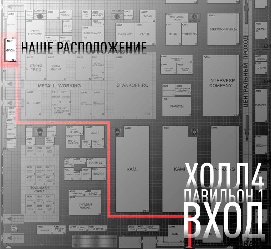 Нас можно найти в павильоне 1, зал 4, стенд А8057